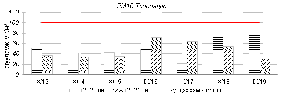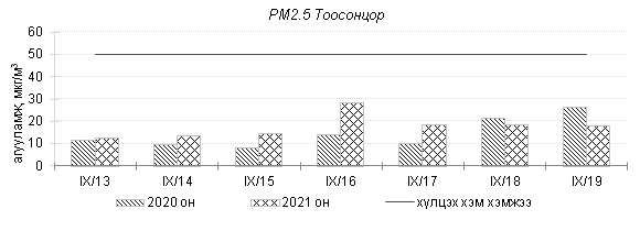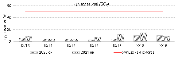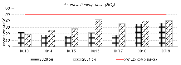 Улаанбаатар хотын агаарт түгээмэл бохирдуулах бодис хүхэрлэг хий /SO2/, азотын давхар исэл /NO2/, тоосонцор /PM10, PM2.5/, нүүрстөрөгчийн дутуу исэл /CO/, озон /O3/-ы агууламжийг тодорхойллоо.