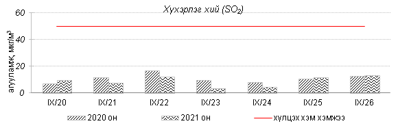 Улаанбаатар хотын агаарт түгээмэл бохирдуулах бодис хүхэрлэг хий /SO2/, азотын давхар исэл /NO2/, тоосонцор /PM10, PM2.5/, нүүрстөрөгчийн дутуу исэл /CO/, озон /O3/-ы агууламжийг тодорхойллоо.