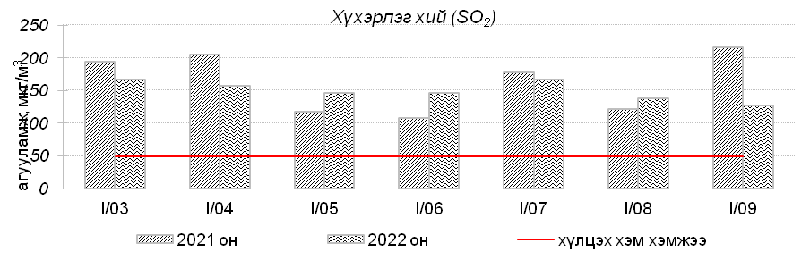 Улаанбаатар хотын агаарт түгээмэл бохирдуулах бодис хүхэрлэг хий /SO2/, азотын давхар исэл /NO2/, тоосонцор /PM10, PM2.5/, нүүрстөрөгчийн дутуу исэл /CO/, озон /O3/-ы агууламжийг тодорхойллоо.
