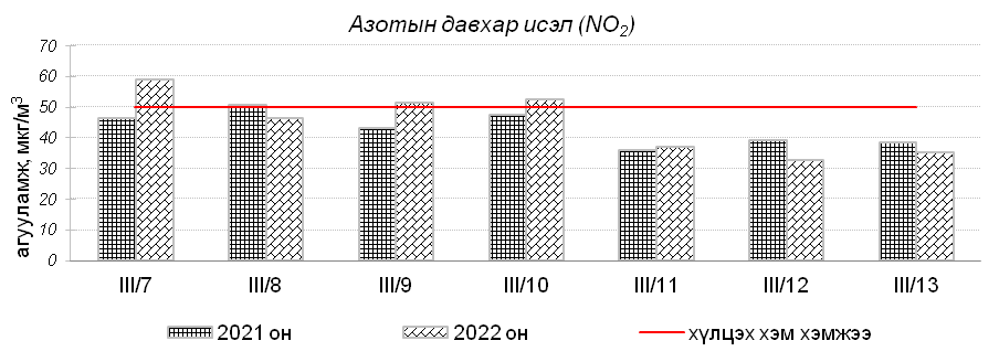 Улаанбаатар хотын агаарт түгээмэл бохирдуулах бодис хүхэрлэг хий /SO2/, азотын давхар исэл /NO2/, тоосонцор /PM10, PM2.5/, нүүрстөрөгчийн дутуу исэл /CO/, озон /O3/-ы агууламжийг тодорхойллоо.