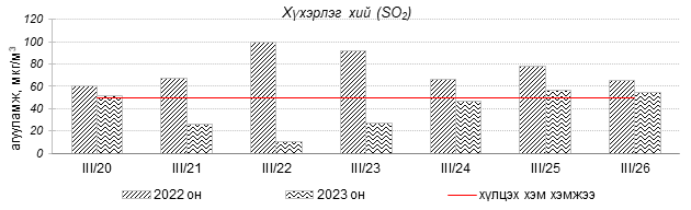 Улаанбаатар хотын агаарт түгээмэл бохирдуулах бодис хүхэрлэг хий /SO2/, азотын давхар исэл /NO2/, тоосонцор /PM10, PM2.5/, нүүрстөрөгчийн дутуу исэл /CO/, озон /O3/-ы агууламжийг тодорхойллоо.