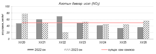 Улаанбаатар хотын агаарын чанарын индексийн мэдээгээр 2023 оны 11 дүгээр сарын 20-26-ны өдрүүдэд Мишээл экспо, Зайсан орчим “Цэвэр” болон “Хэвийн”, харин 100-н айл, Цахилгаан станц, Шархад, Толгойт, Нисэх, Налайх, 13-р хороолол, Амгалан, Ургах наран хороолол, 5-н буудал, 1-р хороолол, Зурагт, Баруун 4-н зам орчим “Бага бохирдолтой” харин зарим өдөр Хайлааст, Баянхошуу орчим “Бохирдолтой” түвшинд хүрсэн байна. Дэлгэрэнгүйг эндээс үзнэ үү.