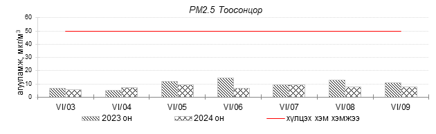 Улаанбаатар хотын агаарт түгээмэл бохирдуулах бодис хүхэрлэг хий /SO2/, азотын давхар исэл /NO2/, тоосонцор /PM10, PM2.5/, нүүрстөрөгчийн дутуу исэл /CO/, озон /O3/-ны агууламжийг тодорхойллоо.