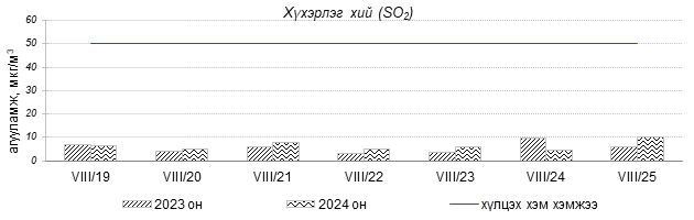 Улаанбаатар хотын агаарт түгээмэл бохирдуулах бодис хүхэрлэг хий /SO2/, азотын давхар исэл /NO2/, тоосонцор /PM10, PM2.5/, нүүрстөрөгчийн дутуу исэл /CO/, озон /O3/-ны агууламжийг тодорхойллоо.