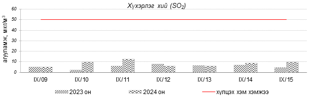 Улаанбаатар хотын агаарт түгээмэл бохирдуулах бодис хүхэрлэг хий /SO2/, азотын давхар исэл /NO2/, тоосонцор /PM10, PM2.5/, нүүрстөрөгчийн дутуу исэл /CO/, озон /O3/-ны агууламжийг тодорхойллоо.