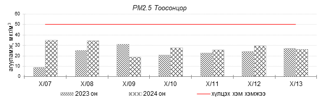 Улаанбаатар хотын агаарт түгээмэл бохирдуулах бодис хүхэрлэг хий /SO2/, азотын давхар исэл /NO2/, тоосонцор /PM10, PM2.5/, нүүрстөрөгчийн дутуу исэл /CO/, озон /O3/-ны агууламжийг тодорхойллоо.