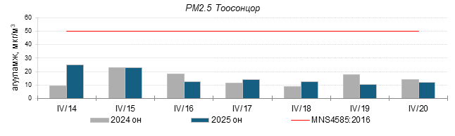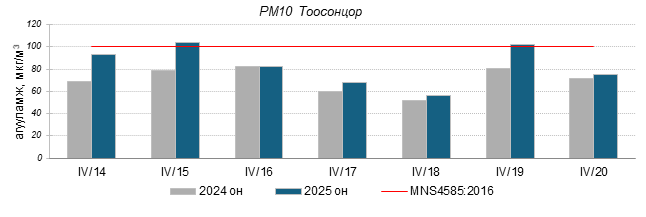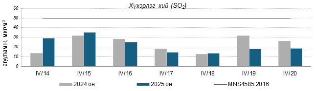 Улаанбаатар хотын агаарт түгээмэл бохирдуулах бодис хүхэрлэг хий /SO2/, азотын давхар исэл /NO2/, тоосонцор /PM10, PM2.5/, нүүрстөрөгчийн дутуу исэл /CO/, озон /O3/-ны агууламжийг тодорхойллоо.