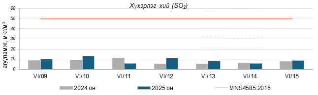 Улаанбаатар хотын агаарт түгээмэл бохирдуулах бодис хүхэрлэг хий /SO2/, азотын давхар исэл /NO2/, тоосонцор /PM10, PM2.5/, нүүрстөрөгчийн дутуу исэл /CO/, озон /O3/-ны агууламжийг тодорхойллоо.
