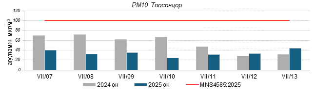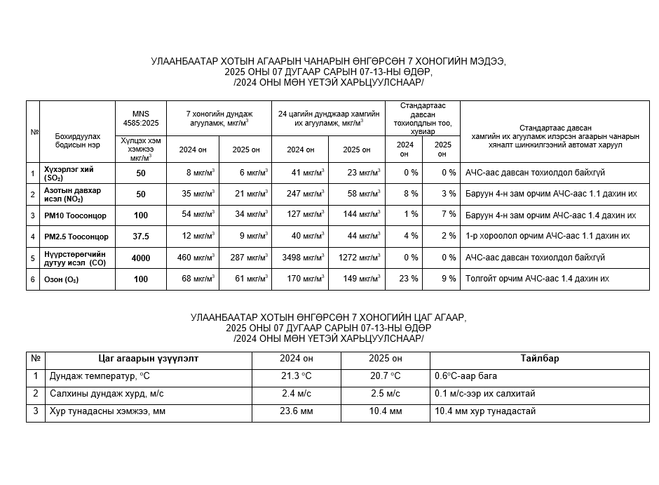 Улаанбаатар хотын агаарт түгээмэл бохирдуулах бодис хүхэрлэг хий /SO2/, азотын давхар исэл /NO2/, тоосонцор /PM10, PM2.5/, нүүрстөрөгчийн дутуу исэл /CO/, озон /O3/-ны агууламжийг тодорхойллоо.