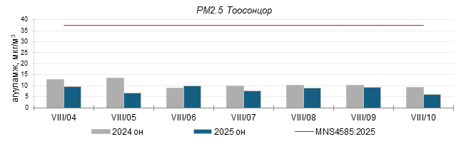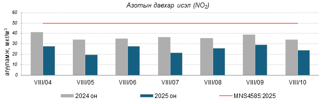 Улаанбаатар хотын агаарт түгээмэл бохирдуулах бодис хүхэрлэг хий /SO2/, азотын давхар исэл /NO2/, тоосонцор /PM10, PM2.5/, нүүрстөрөгчийн дутуу исэл /CO/, озон /O3/-ны агууламжийг тодорхойллоо.