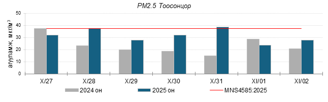 Улаанбаатар хотын агаарт түгээмэл бохирдуулах бодис хүхэрлэг хий /SO2/, азотын давхар исэл /NO2/, тоосонцор /PM10, PM2.5/, нүүрстөрөгчийн дутуу исэл /CO/, озон /O3/-ны агууламжийг тодорхойллоо.