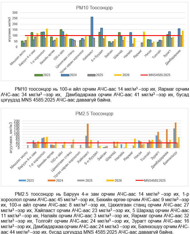 УЛААНБААТАР ХОТЫН АГААРЫН ЧАНАРЫН ХЯНАЛТ ШИНЖИЛГЭЭНИЙ ХОНОГИЙН МЭДЭЭ /2026.04.13/