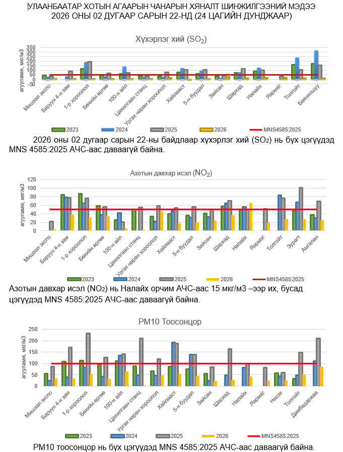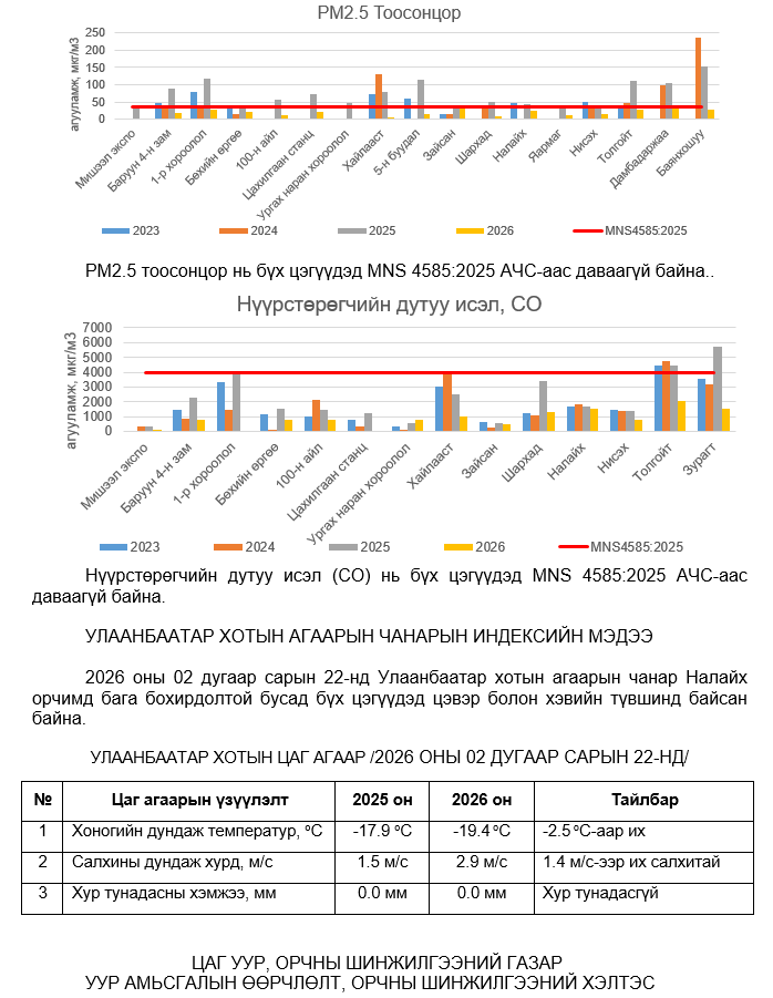 УЛААНБААТАР ХОТЫН АГААРЫН ЧАНАРЫН ХЯНАЛТ ШИНЖИЛГЭЭНИЙ ХОНОГИЙН МЭДЭЭ /2026.03.05/