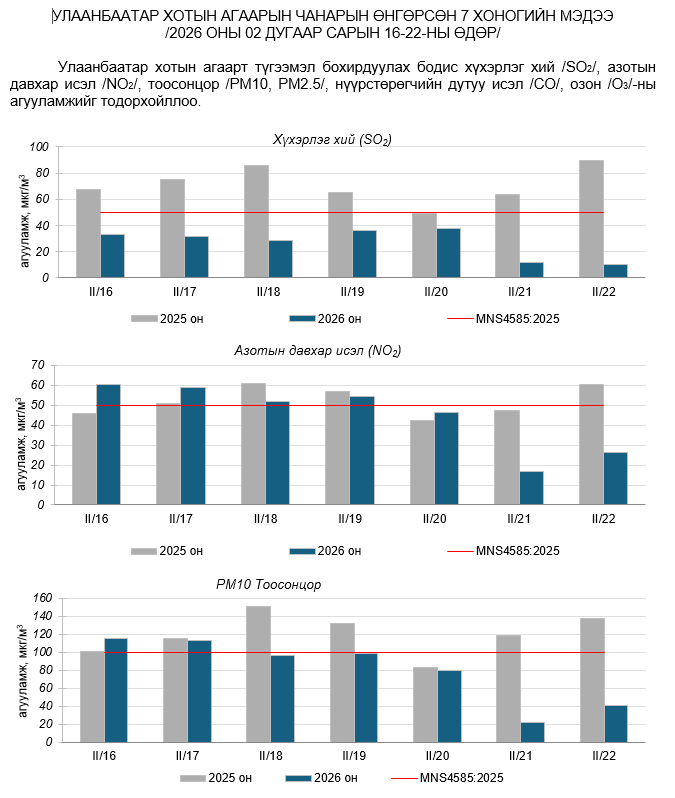 УЛААНБААТАР ХОТЫН АГААРЫН ЧАНАРЫН ХЯНАЛТ ШИНЖИЛГЭЭНИЙ ХОНОГИЙН МЭДЭЭ /2026.04.12/
