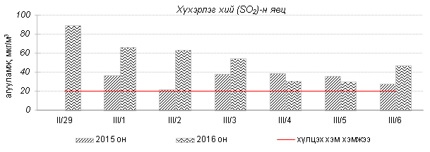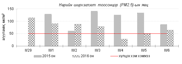 Улаанбаатар хотын агаарт түгээмэл бохирдуулах бодис хүхэрлэг хий /SO2/, азотын давхар исэл /NO2/, тоосонцор /PM10, PM2.5/, нүүрстөрөгчийн дутуу исэл /CO/, озон /O3/-ы агууламжийг тодорхойллоо.