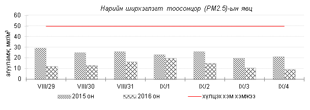 Улаанбаатар хотын агаарт түгээмэл бохирдуулах бодис хүхэрлэг хий /SO2/, азотын давхар исэл /NO2/, тоосонцор /PM10, PM2.5/, нүүрстөрөгчийн дутуу исэл /CO/, озон /O3/-ы агууламжийг тодорхойллоо.