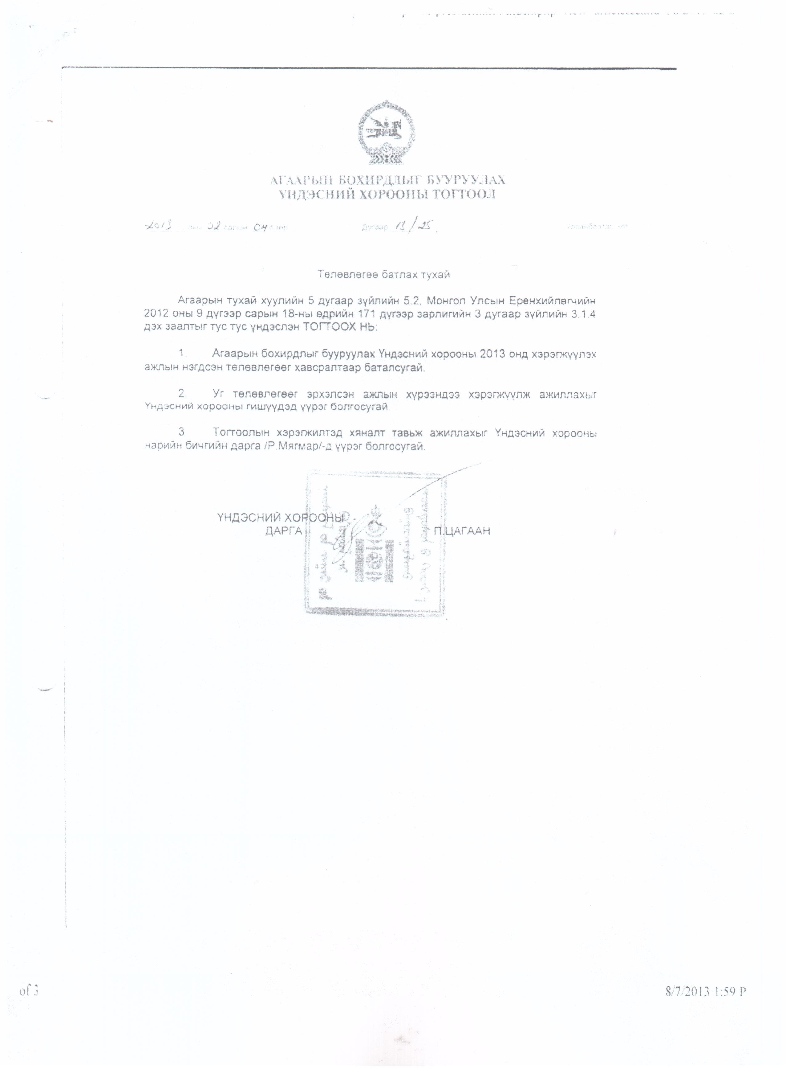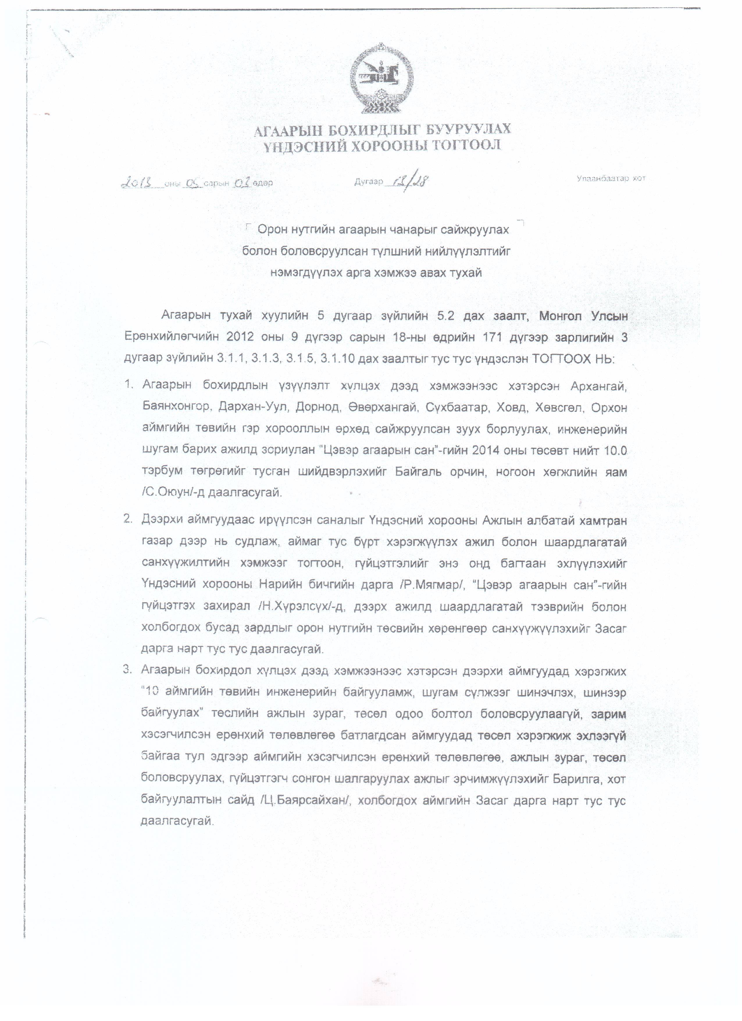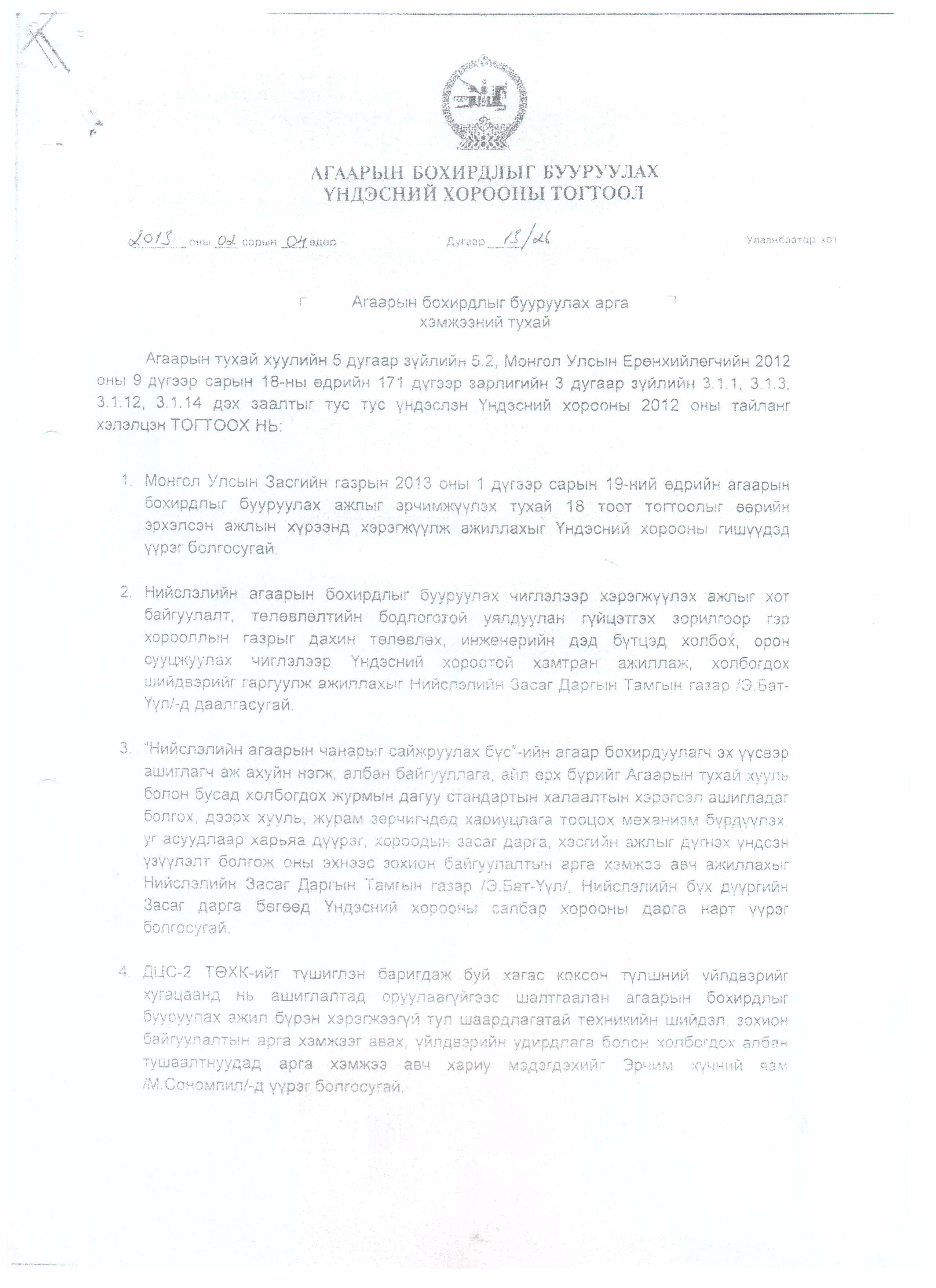 АГААРЫН БОХИРДЛЫН ОЛОН УЛСЫН ХУРЛААС ГАРСАН ЗӨВЛӨМЖ