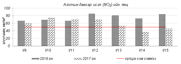 Өнгөрсөн 7 хоногийн агаарын чанарын хяналт шинжилгээний дүнгээр Улаанбаатар хотын хэмжээнд 2017.01.11-нд агаар “Их” болон “Маш их” бохирдолтой түвшинд бусад өдрүүдэд Толгойт, Зурагт, Баянхошуу зэрэг томоохон гэр хорооллын орчимд агаар “Маш их” бохирдолтой түвшинд байлаа. Улаанбаатар хотын бусад хэсэгт агаар “Дунд” болон “Бага”  зэргийн бохидолтой түвшинд байсан байна. Агаар дахь гол бохирдуулах бодис нь PM10, PM2.5 тоосонцор байна. Дэлгэрэнгүй мэдээллийг хавсралтаас үзнэ үү.