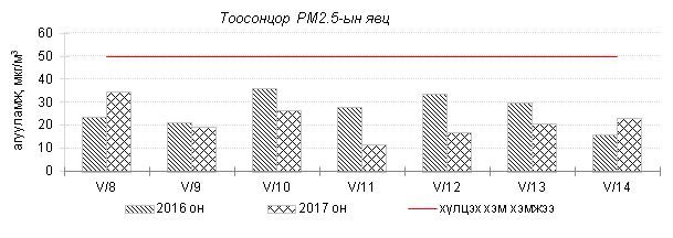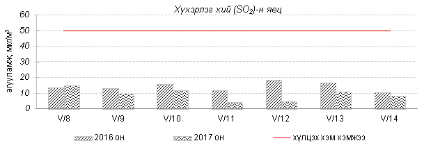 Улаанбаатар хотын агаарт түгээмэл бохирдуулах бодис хүхэрлэг хий /SO2/, азотын давхар исэл /NO2/, тоосонцор /PM10, PM2.5/, нүүрстөрөгчийн дутуу исэл /CO/, озон /O3/-ы агууламжийг тодорхойллоо.