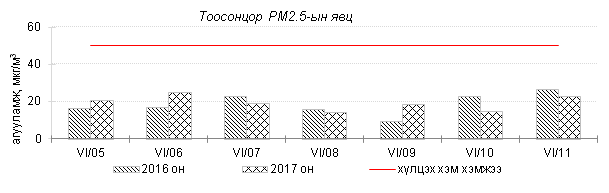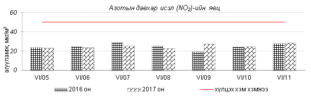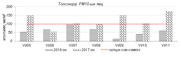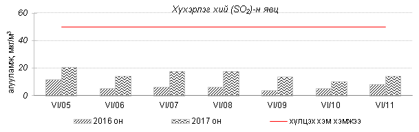 Улаанбаатар хотын агаарт түгээмэл бохирдуулах бодис хүхэрлэг хий /SO2/, азотын давхар исэл /NO2/, тоосонцор /PM10, PM2.5/, нүүрстөрөгчийн дутуу исэл /CO/, озон /O3/-ы агууламжийг тодорхойллоо.