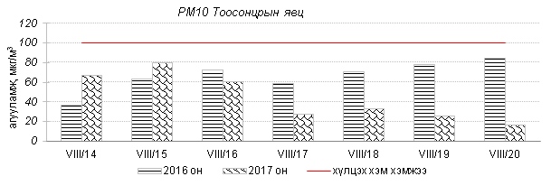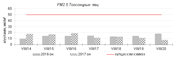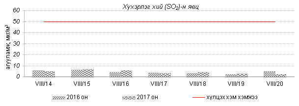 Улаанбаатар хотын агаарт түгээмэл бохирдуулах бодис хүхэрлэг хий /SO2/, азотын давхар исэл /NO2/, тоосонцор /PM10, PM2.5/, нүүрстөрөгчийн дутуу исэл /CO/, озон /O3/-ны агууламжийг тодорхойллоо.