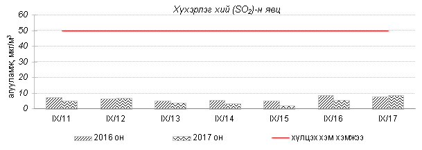 Улаанбаатар хотын агаарт түгээмэл бохирдуулах бодис хүхэрлэг хий /SO2/, азотын давхар исэл /NO2/, тоосонцор /PM10, PM2.5/, нүүрстөрөгчийн дутуу исэл /CO/, озон /O3/-ны агууламжийг тодорхойллоо.