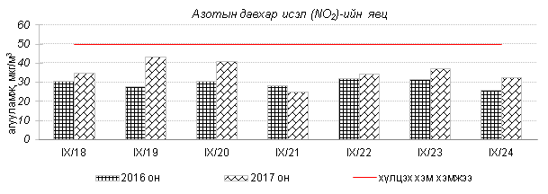 Өнгөрсөн 7 хоногийн агаарын чанарын хяналт шинжилгээний дүнгээр Улаанбаатар хотын хэмжээнд агаар “Хэвийн” болон “Бага” зэргийн бохирдолтой байна. Агаар дахь гол бохирдуулах бодис нь азотын давхар исэл (NO2), PM10 тоосонцор байна. Дэлгэрэнгүй мэдээг хавсралтаас үзнэ үү.