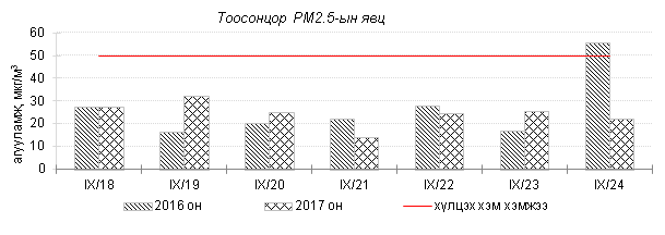 Улаанбаатар хотын агаарт түгээмэл бохирдуулах бодис хүхэрлэг хий /SO2/, азотын давхар исэл /NO2/, тоосонцор /PM10, PM2.5/, нүүрстөрөгчийн дутуу исэл /CO/, озон /O3/-ны агууламжийг тодорхойллоо.