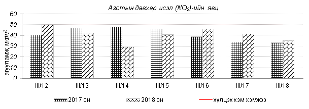 Өнгөрсөн 7 хоногийн агаарын чанарын хяналт шинжилгээний дүнгээр Улаанбаатар хотын агаарын чанар ихэнх өдрүүдэд “Бага” зэргийн бохирдолтой байсан байна. Агаар дахь хүхэрлэг хий, PM2.5, PM10 тоосонцрын агууламжийг 2017 оны мөн үетэй харьцуулахад 6-11%-иар бага ба 24 цагийн дундаж хамгийн их агууламж агаарын чанарын стандартаас 1.7-2.3 дахин их байна. Дэлгэрэнгүй мэдээг хавсралтаас үзнэ үү.