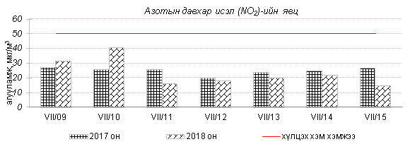 Өнгөрсөн 7 хоногийн агаарын чанарын хяналт шинжилгээний дүнгээр Улаанбаатар хотын агаарын чанар ихэнхдээ  цэвэр болон  хэвийн түвшинд байсан байна. Хамгийн их бохирдолтой NO2 азотын давхар ислийн 7 хоногийн дундаж агууламжийг өмнөх оны мөн үетэй харьцуулахад ижил түвшинд, харин 24 цагийн дундаж хамгийн их агууламж агаарын чанарын стандартаас 1.9 дахин их байлаа. Дэлгэрэнгүйг эндээс үзнэ үү.