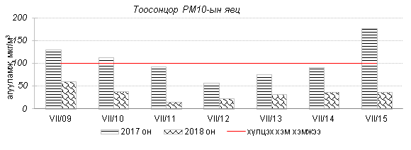 Улаанбаатар хотын агаарын чанарын 7 хоногийн мэдээ /2018.07.09-07.15/