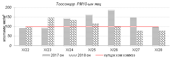 Улаанбаатар хотын агаарын чанарын 7 хоногийн мэдээ /2018.10.22-10.28/