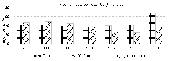 Өнгөрсөн 7 хоногийн агаарын чанарын хяналт шинжилгээний дүнгээр Улаанбаатар хотын хэмжээнд агаарын чанар “Бага бохирдолтой” байсан байна. Хамгийн их бохирдол илэрсэн PM10 тоосонцрын агууламжийг 2017 оны мөн үетэй харьцуулахад 24%-иар бага, 24 цагийн дундаж хамгийн их агууламж Агаарын чанарын стандартаас 2.5  дахин их байлаа. Дэлэгрэнгүйг хавсралтаас үзнэ үү.