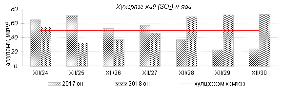 Улаанбаатар хотын агаарт түгээмэл бохирдуулах бодис хүхэрлэг хий /SO2/, азотын давхар исэл /NO2/, тоосонцор /PM10, PM2.5/, нүүрстөрөгчийн дутуу исэл /CO/, озон /O3/-ны агууламжийг тодорхойллоо.