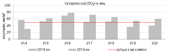 Улаанбаатар хотын агаарт түгээмэл бохирдуулах бодис хүхэрлэг хий /SO2/, азотын давхар исэл /NO2/, тоосонцор /PM10, PM2.5/, нүүрстөрөгчийн дутуу исэл /CO/, озон /O3/-ны агууламжийг тодорхойллоо.
