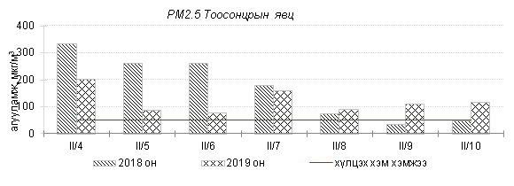 Улаанбаатар хотын агаарын чанарын хяналт шинжилгээний дүнгээр өнгөрсөн 7 хоногт агаарын чанарын индексээр “Их бохирдолтой”, “Бохирдолтой” түвшинд хүрсэн байна. Агаарт PM2.5, PM10 тоосонцрын агууламж хамгийн их байсан бөгөөд эдгээр тоосонцрын 24 цагийн дундаж хамгийн их агууламж Агаарын чанарын стандартаас 5-7 дахин их байлаа. Дэлгэрэнгүйг эндээс үзнэ үү.