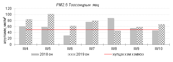 Улаанбаатар хотын агаарт түгээмэл бохирдуулах бодис хүхэрлэг хий /SO2/, азотын давхар исэл /NO2/, тоосонцор /PM10, PM2.5/, нүүрстөрөгчийн дутуу исэл /CO/, озон /O3/-ны агууламжийг тодорхойллоо.