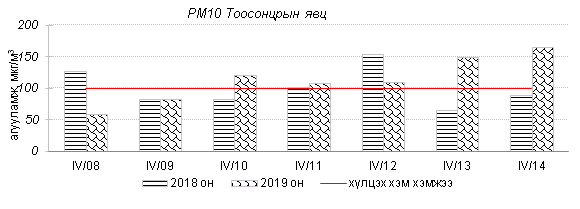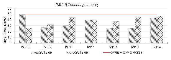 Улаанбаатар хотын агаарт түгээмэл бохирдуулах бодис хүхэрлэг хий /SO2/, азотын давхар исэл /NO2/, тоосонцор /PM10, PM2.5/, нүүрстөрөгчийн дутуу исэл /CO/, озон /O3/-ны агууламжийг тодорхойллоо.