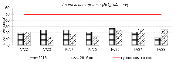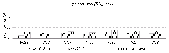 Өнгөрсөн 7 хоногийн агаарын чанарын хяналт шинжилгээний дүнгээр Улаанбаатар хотын хэмжээнд 26-ны өдрөөс бусад өдрүүдэд агаар “Хэвийн” болон “Бага бохирдолтой” түвшинд байлаа. Харин 26-ны өдөр хүчтэй шороон шуурганы улмаас Баянхошуу, Цахилгаан станц орчимд “Маш их бохирдолтой”, “Их бохирдолтой” түвшинд хүрч PM10 тоосонцрын агууламж эрс ихэссэн байна. 28-ны өдөр бороо орохын өмнө богино хугацаанд хүчтэй салхилсан хэдий ч 24 цагийн дундажаар агаар “Бага бохирдолтой” түвшинд байсан байна. PM10 тоосонцрын 24 цагийн дундаж хамгийн их агууламж Агаарын чанарын стандартаас 5.4 дахин их байсан байна. Дэлгэрэнгүйг эндээс үзнэ үү.
