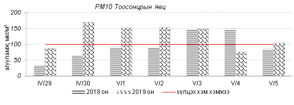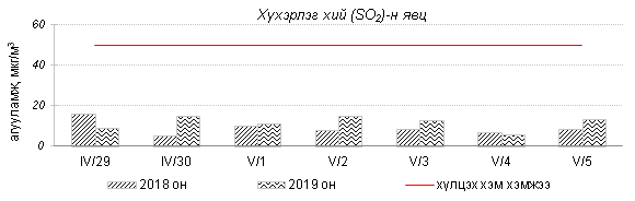 Өнгөрсөн 7 хоногийн агаарын чанарын хяналт шинжилгээний дүнгээр Улаанбаатар хотын хэмжээнд Ургах наран хорооллоос бусад хэсэгт агаар “Хэвийн” болон “Бага бохирдолтой” түвшинд байлаа. Харин Ургах наран хороолол орчим автозам засварын ажлын улмаас PM10 тоосонцрын агууламж “Их бохирдолтой”, “Маш их бохирдолтой” түвшинд хүрч байна. Тус цэгт PM10 тоосонцрын 24 цагийн дундаж хамгийн их агууламж Агаарын чанарын стандартаас 7 дахин их байна. Дэлгэрэнгүйг эндээс үзнэ үү.