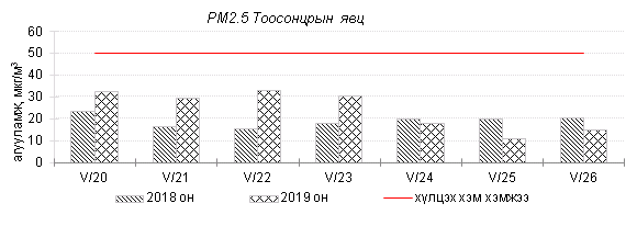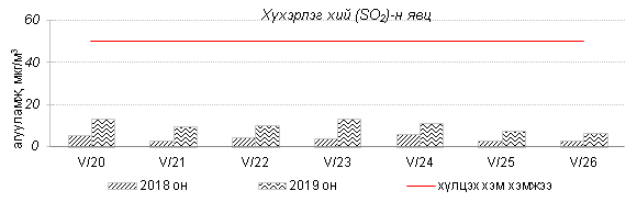Улаанбаатар хотын агаарт түгээмэл бохирдуулах бодис хүхэрлэг хий /SO2/, азотын давхар исэл /NO2/, тоосонцор /PM10, PM2.5/, нүүрстөрөгчийн дутуу исэл /CO/, озон /O3/-ны агууламжийг тодорхойллоо.