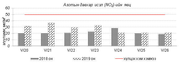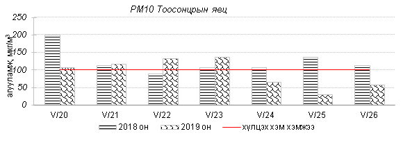 Өнгөрсөн 7 хоногийн агаарын чанарын хяналт шинжилгээний дүнгээр Улаанбаатар хотын төв автозам дагуу буюу Баруун 4 зам, 13-р хороолол орчим азотын давхар исэл, гэр хорооллын орчим PM10 тоосонцор “Бага бохирдолтой” түвшинд байна. PM10 тоосонцрын агууламж бусад агаар бохирдуулах бодисуудаас их илэрсэн бөгөөд 24 цагийн дундаж хамгийн их агууламж Нисэх орчим Агаарын чанарын стандартаас 2.4 дахин их байна. Дэлгэрэнгүйг эндээс үзнэ үү.