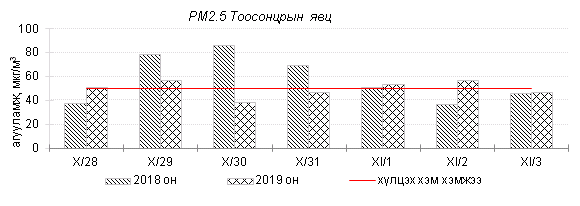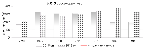 Улаанбаатар хотын агаарт түгээмэл бохирдуулах бодис хүхэрлэг хий /SO2/, азотын давхар исэл /NO2/, тоосонцор /PM10, PM2.5/, нүүрстөрөгчийн дутуу исэл /CO/, озон /O3/-ны агууламжийг тодорхойллоо.