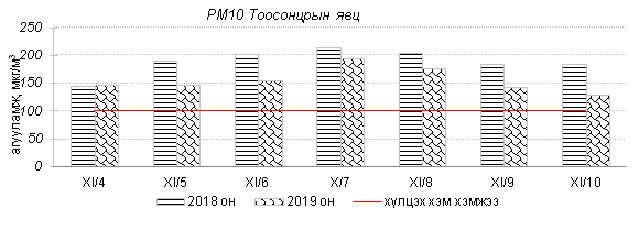 Өнгөрсөн 7 хоногийн агаарын чанарын хяналт шинжилгээний дүнгээр Улаанбаатар хотын агаарын чанар Баянхошуу орчмоос бусад цэгт “Бага бохирдолтой” байсан байна. Барилга, бүтээн байгуулалтын ажилтай холбоотойгоор Баянхошуу орчим агаар дахь тоосонцрын агууламж “Бохирдолтой” түвшинд хүрсэн. Дэлгэрэнгүйг эндээс үзнэ үү.