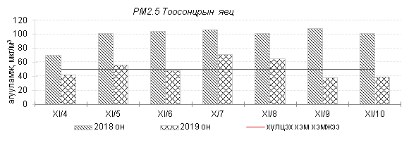 Улаанбаатар хотын агаарт түгээмэл бохирдуулах бодис хүхэрлэг хий /SO2/, азотын давхар исэл /NO2/, тоосонцор /PM10, PM2.5/, нүүрстөрөгчийн дутуу исэл /CO/, озон /O3/-ны агууламжийг тодорхойллоо.