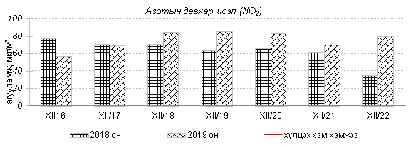 Улаанбаатар хотын агаарт түгээмэл бохирдуулах бодис хүхэрлэг хий /SO2/, азотын давхар исэл /NO2/, тоосонцор /PM10, PM2.5/, нүүрстөрөгчийн дутуу исэл /CO/, озон /O3/-ны агууламжийг тодорхойллоо.