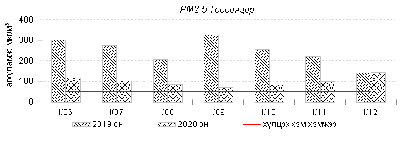 Улаанбаатар хотын агаарт түгээмэл бохирдуулах бодис хүхэрлэг хий /SO2/, азотын давхар исэл /NO2/, тоосонцор /PM10, PM2.5/, нүүрстөрөгчийн дутуу исэл /CO/, озон /O3/-ны агууламжийг тодорхойллоо.