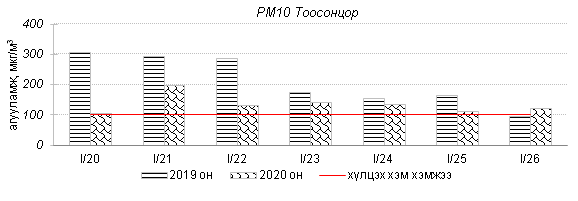 Улаанбаатар хотын агаарт түгээмэл бохирдуулах бодис хүхэрлэг хий /SO2/, азотын давхар исэл /NO2/, тоосонцор /PM10, PM2.5/, нүүрстөрөгчийн дутуу исэл /CO/, озон /O3/-ны агууламжийг тодорхойллоо.