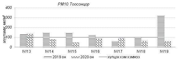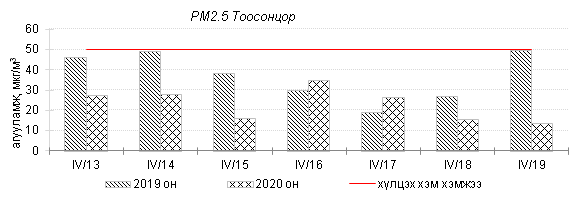Улаанбаатар хотын агаарт түгээмэл бохирдуулах бодис хүхэрлэг хий /SO2/, азотын давхар исэл /NO2/, тоосонцор /PM10, PM2.5/, нүүрстөрөгчийн дутуу исэл /CO/, озон /O3/-ны агууламжийг тодорхойллоо.