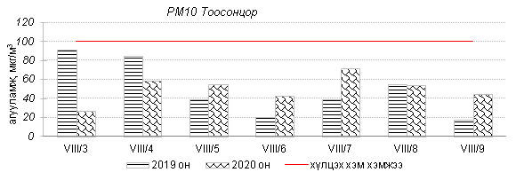 Улаанбаатар хотын агаарт түгээмэл бохирдуулах бодис хүхэрлэг хий /SO2/, азотын давхар исэл /NO2/, тоосонцор /PM10, PM2.5/, нүүрстөрөгчийн дутуу исэл /CO/, озон /O3/-ны агууламжийг тодорхойллоо.